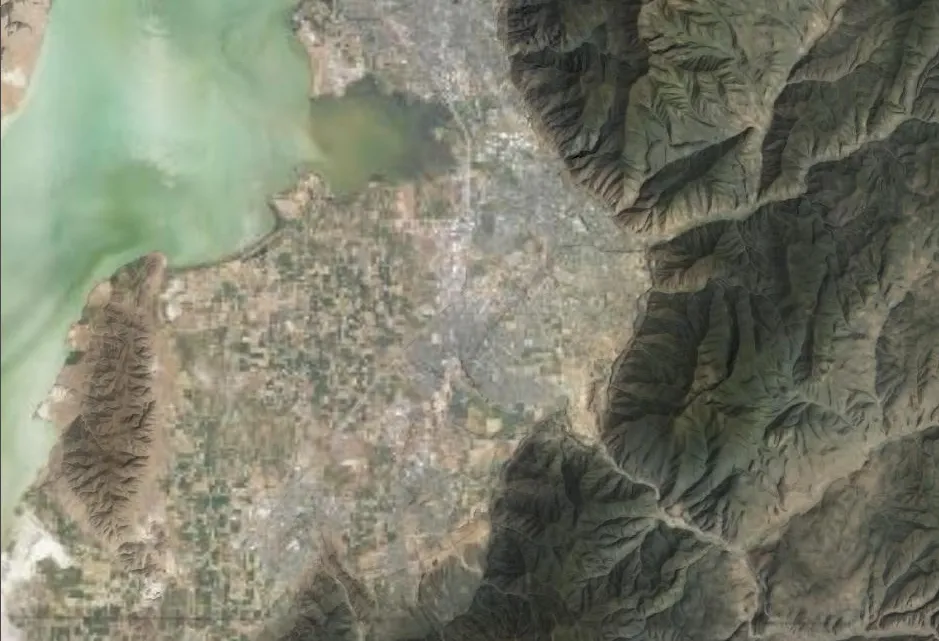 See how blurry the imagery is? The farm fields look like jpeg artifact noise and the urban areas are just a jumble of grey pixels.