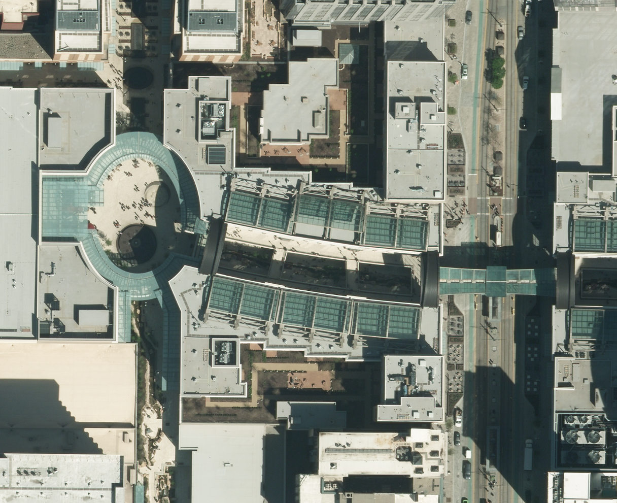 High resolution orthorectified images combine the image characteristics of an aerial photograph with the geometric qualities of a map. An orthophoto is a uniform-scale image where corrections have been made for feature displacement such as building tilt and for scale variations caused by terrain relief, sensor geometry, and camera tilt. A mathematical equation based on ground control points, sensor calibration information, and a digital elevation model is applied to each pixel to rectify the image to obtain the geometric qualities of a map.